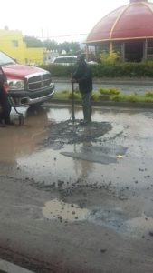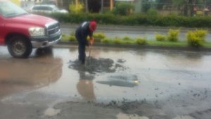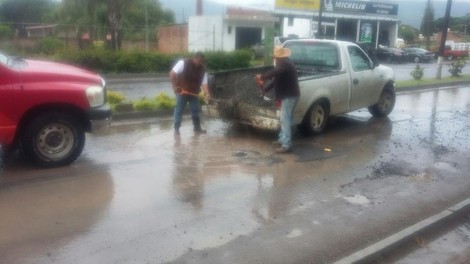 Se atiende reporte de baches profundos ocasionados por lluvia en el inicio del Boulevard Oriente.