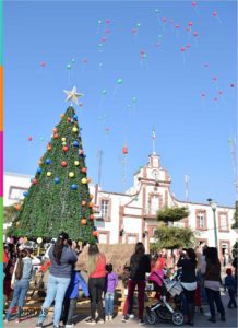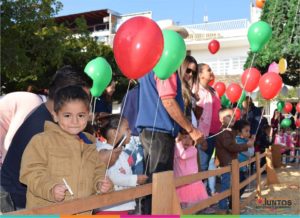 A muy temprana hora del día, estudiantes de preescolar visitan el nacimiento que embellece nuestra Plaza Municipal de Jocotepec, donde los niños y niñas con ansias esperaron la cuenta de tres para que sus deseos se cumplan al lanzar su carta en un globo al niñito Dios.