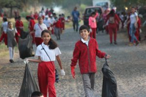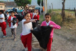 Estudiantes de la escuela José Santana,comandados por la maestra Irene Miranda Navarro,se dieron a la tarea de limpiar de basura a gran parte de la cabecera municipal.