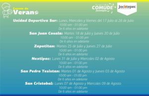 El próximo lunes comienzan en la cabecera municipal y algunas delegaciones los Curso de Verano del COMUDE Jocotepec para niñas y niños de 6 años en adelante! Comunícate al (387) 763 2730 para recibir más información